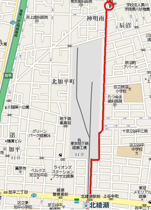 左手に東京メトロの綾瀬独身寮があります。 |