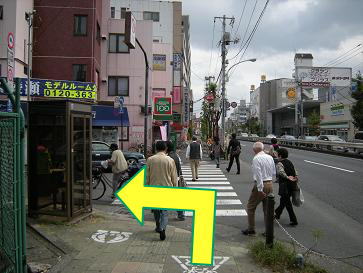 駅の出口を出たら北側にある横断歩道を渡ります。 |