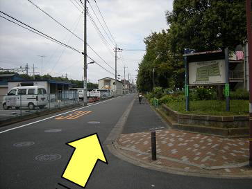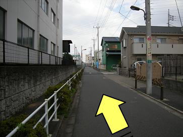 工場を右手に見ながら突き当りを右折します。 |